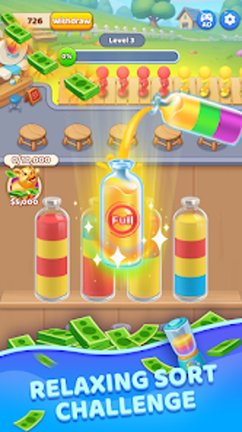 Pour Color Crew é um jogo disponível para Android que combina arte e lógica em uma experiência envolvente. O objetivo é despejar líquidos coloridos entre garrafas, organizando cada tom com precisão e combinando personagens a suas bebidas ideais. A cada sucesso, o jogador experimenta a satisfação de criar harmonia nas cores, promovendo um jogo relaxante que também desafia as habilidades de observação e raciocínio. Além disso, a jogabilidade é acessível, permitindo que jogadores de todos os níveis se divirtam enquanto exercitam suas mentes.